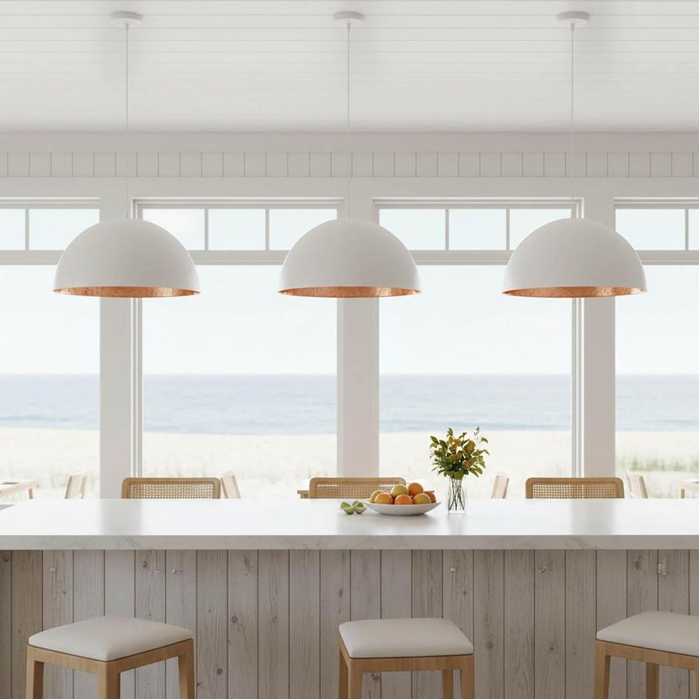 - The Alfresco Lamp is a new take on our tremendously popular egg lamps, now designed specifically for living room's, offices and bedrooms. This fixture features a unique beaten metal texture with a stunning matte white exterior and a polished copper interior. This light is certain to bring a sense of undeniable modern interior style to your room.