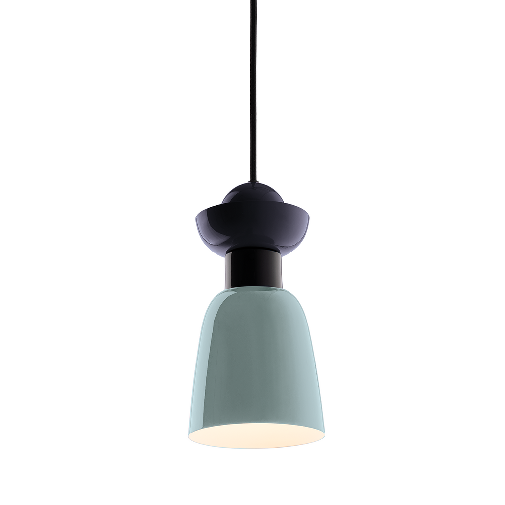 The Brexley Pendant Light in polished black & navy blue by Mayfield Lighting features a bold, contemporary design with rich navy tones contrasted against polished black accents. Its sleek silhouette makes it an eye-catching focal point above dining tables, kitchen islands, or in living spaces, while delivering ambient illumination with modern style.