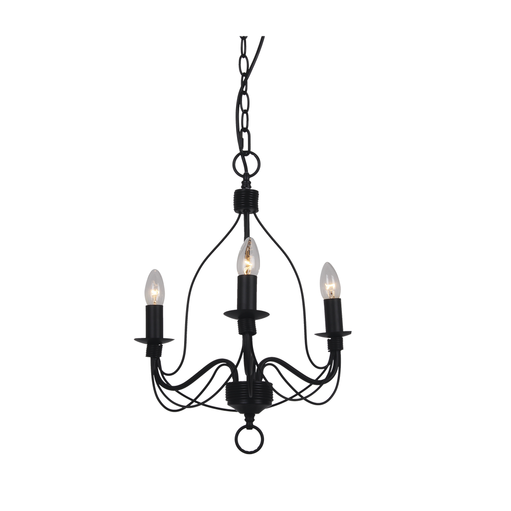 - The Candice 3 Light Pendant in black by Martec showcases classic elegance through a timeless candelabra design. Crafted to suit refined interiors, it offers an opulent yet balanced presence that works beautifully in dining rooms, living spaces, or entryways.