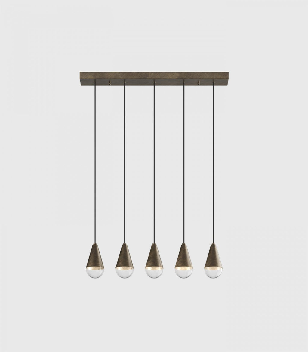 - The Dew Linear Pendant Light in Iron by IL Fanale Lighting offers a refined industrial aesthetic through its elongated arrangement of handcrafted iron pendants. The linear composition provides balanced, focused illumination ideal for kitchen islands, dining tables, or long hallways.