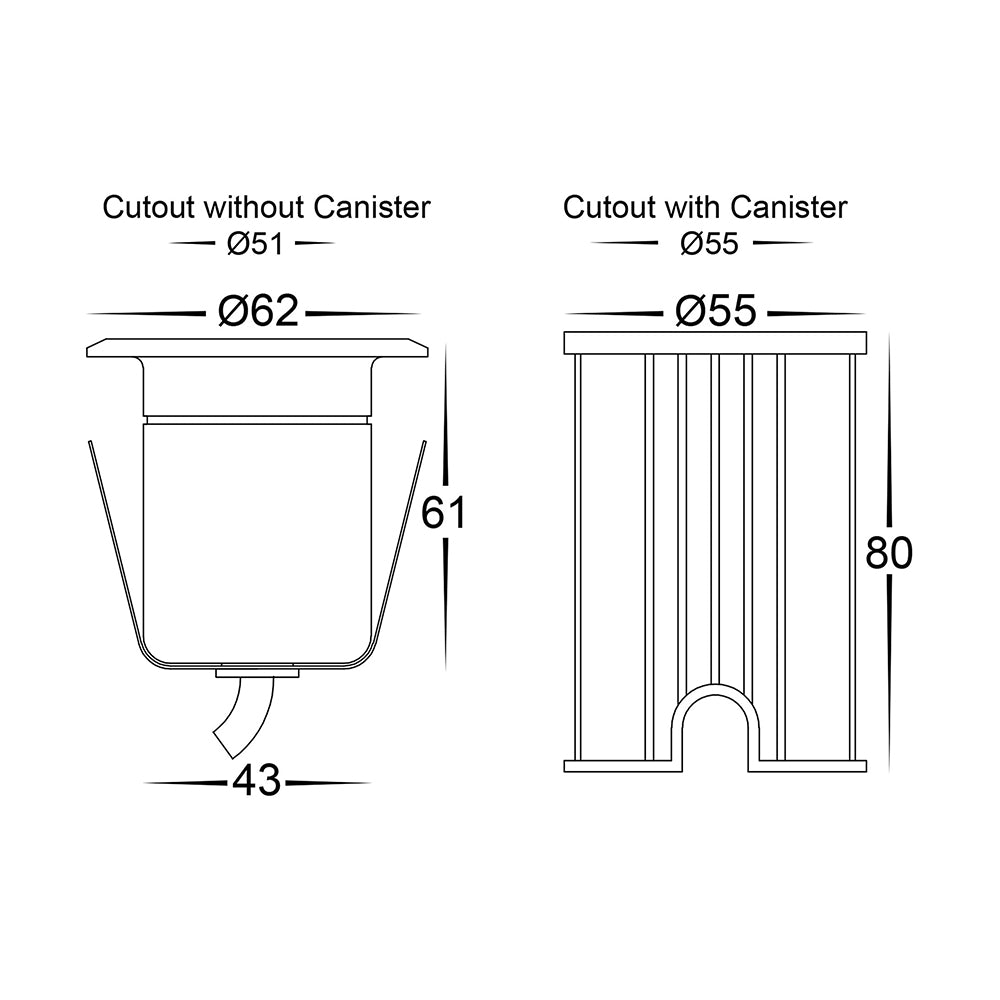 - Cut-Out: 55 mm