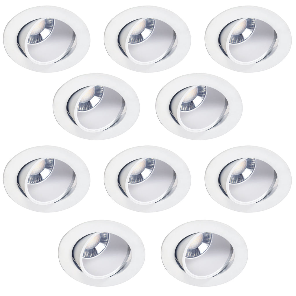 - The Focus.8 LED Downlight 10 Pack 8W Tri Colour White delivers efficient and flexible lighting with a recessed adjustable gimbal design, allowing each fitting to tilt or sit flush for a clean, modern look. Featuring tri-colour temperature selection, it provides the perfect ambience for any space. The 60° beam angle ensures even light distribution, while the recessed design minimises glare. Dimmable with most LED-friendly dimmers, it offers superior control and energy efficiency. The matte-finished plastic trim and reflector enhance corrosion resistance for lasting durability. Available now at Lights4Less.