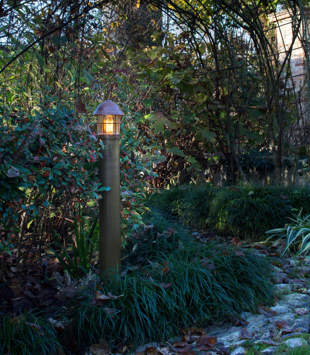 - The Garden 1160mm Outdoor Bollard Light in Transparent by IL Fanale Lighting embodies an essential and contemporary design that enhances outdoor spaces with understated elegance. The antique brass and copper construction provides exceptional durability while delivering a refined, timeless aesthetic.
