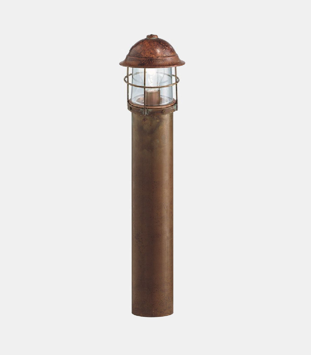 - The Garden 910mm Outdoor Bollard Light in Transparent by IL Fanale Lighting features an essential and contemporary design crafted from antique brass and copper for lasting outdoor durability. The transparent diffuser provides bright, defined illumination ideal for pathways, gardens, courtyards, and landscaped areas.