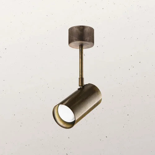 - Girasoli Large Spotlight, available in Antique Brass, Iron, or Natural Brass, features a minimalist cylindrical design inspired by pure geometric forms. With its clean lines and understated elegance, it delivers focused directional illumination while showcasing the natural beauty of its material.