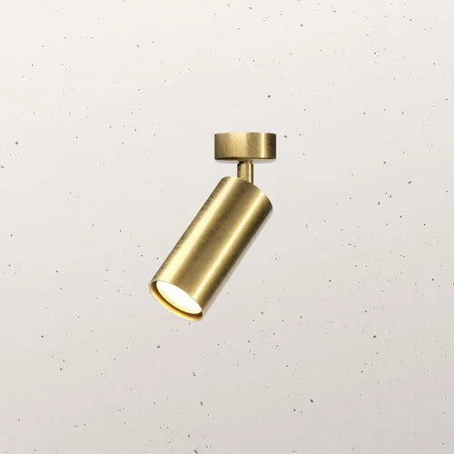 - Girasoli Ceiling Spotlight, available in Antique Brass, Iron, or Natural Brass, features a minimalist cylindrical design inspired by pure geometric forms. With its clean lines and understated elegance, it delivers focused directional illumination while showcasing the natural beauty of its material.