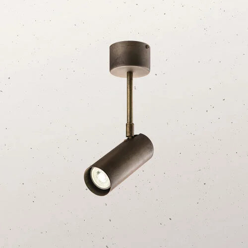 - Girasoli Small Spotlight, available in Antique Brass, Iron, or Natural Brass, features a minimalist cylindrical design inspired by pure geometric forms. With its clean lines and understated elegance, it delivers focused directional illumination while showcasing the natural beauty of its material.