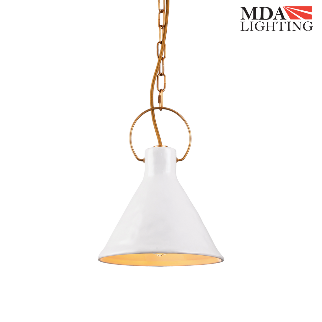- The Ivy Pendant Light in white and gold by Martec features a hand-applied porcelain finish that creates a distinctive, vintage-inspired look. This decorative technique gives each pendant its own unique character while enhancing its premium quality and refined appeal.