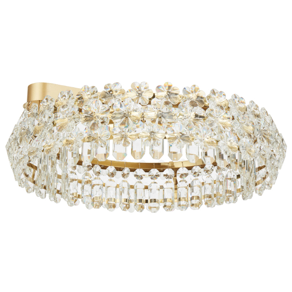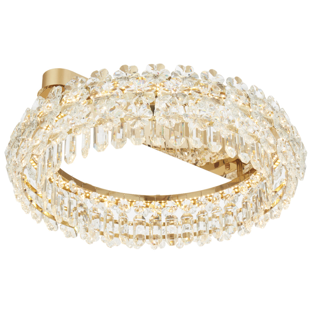- The Landis LED Flush Mount Light 36W 3CCT in Gold by Telbix offers a sleek, contemporary look that blends crystal elegance with modern LED efficiency. Featuring shimmering crystal detailing and an integrated 3CCT system (3000K–5000K), it allows you to shift effortlessly between warm and cool light to suit any mood or setting.