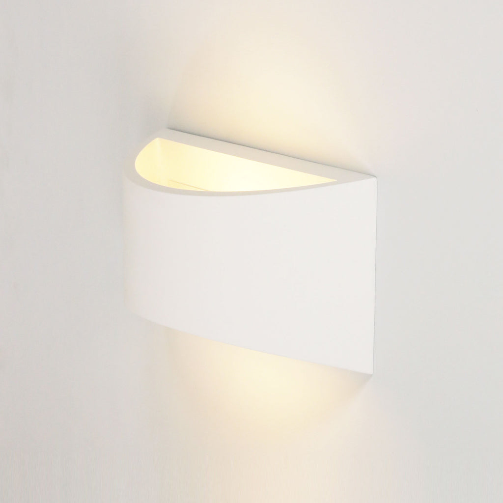 - LIA wall light is made from raw plaster – ready for painting.