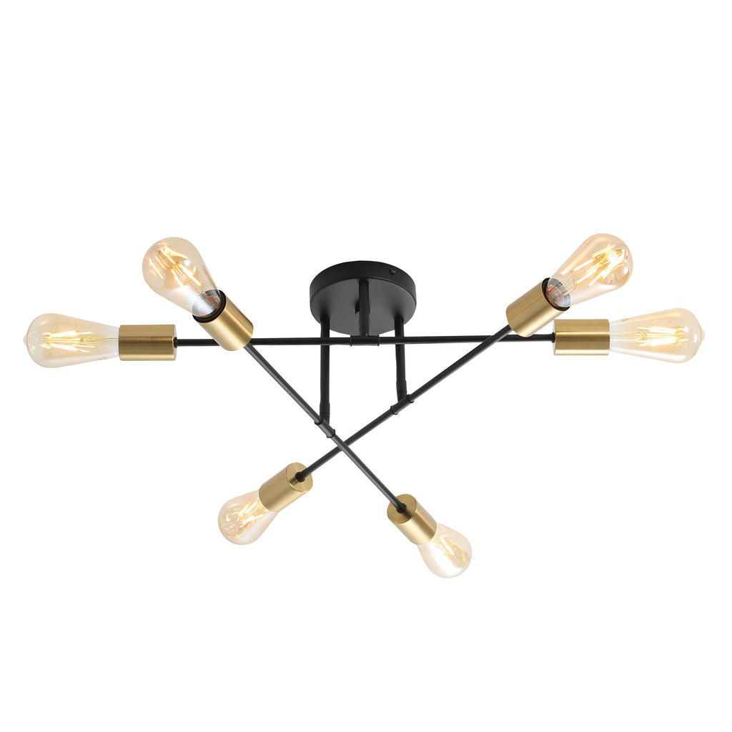 - The Muna 6 Light Semi Flush Mount Light in Satin Brass & Black offers a perfect balance of style and function, ideal for living and dining rooms with low ceilings. Featuring satin brass lamp holders and a sleek black frame with a central swivel joint, it delivers a refined aesthetic with a hint of mid-century flair.
