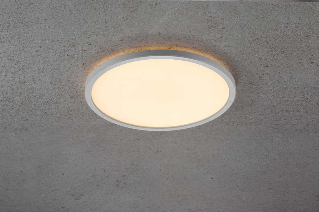 - Oja Flush Mount Light in White by Nordlux is a universally applicable ultra-flat ceiling light with integrated LED and Moodmaker™ functionality, enabling three-step dimming using a standard wall switch—no dimmer required.