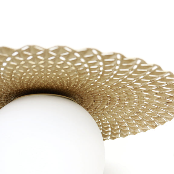 - The Orbis Flush Mount Light in Brushed Yellow with Black and Opal by Lexi Lighting presents a sophisticated blend of metallic elegance and soft diffused illumination. The combination of brushed gold, black accents, and an opal diffuser creates a refined visual statement suitable for modern and transitional interiors.