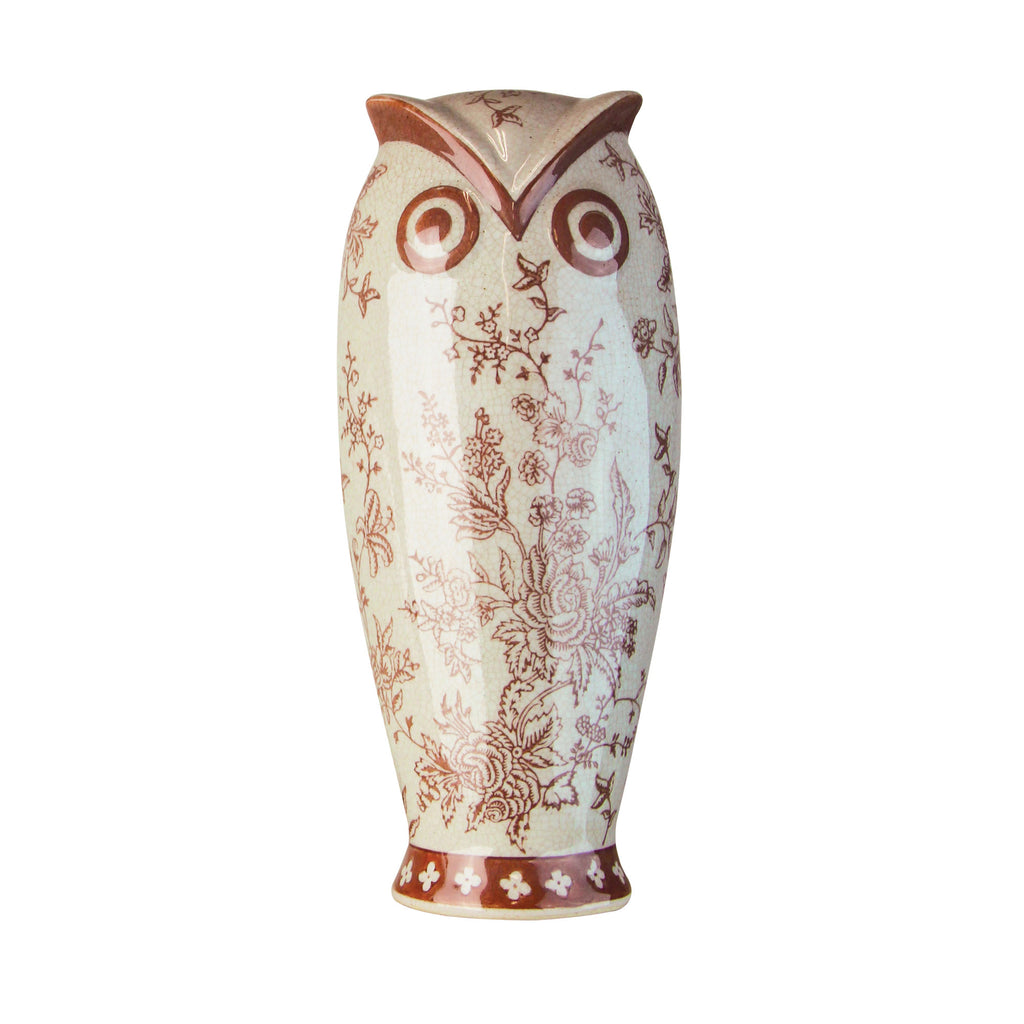 The Owl Ceramic Figurine by Oriel Lighting is a beautifully handcrafted ornament featuring an intricate brown floral design. This charming piece is perfect as a standalone decoration or paired with the 7″ Owl for a lovely set. Available now at Light4Less.