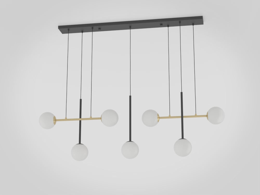 - The Paz 1445mm Steel Pendant Light in black and brushed brass with a white shade by Eglo Lighting features suspended metal elements complemented by opal matte glass spheres.