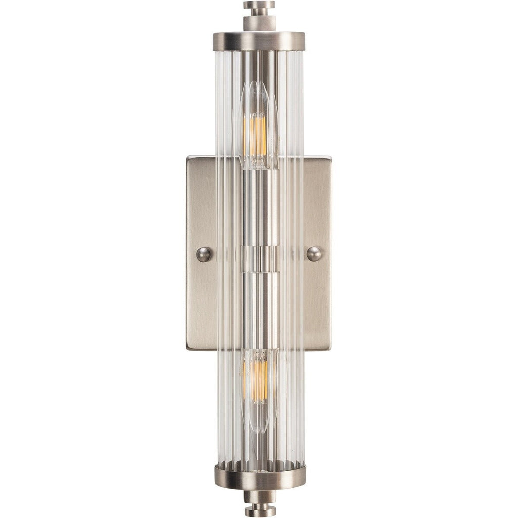 - The Rockford 2 Light Vanity Wall Light in Brushed Nickel by Lighting Inspirations features a sleek and adaptable design ideal for modern or mid-century interiors.