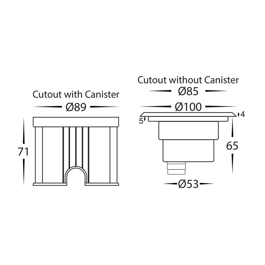 - Cutout With Canister: 89 mm