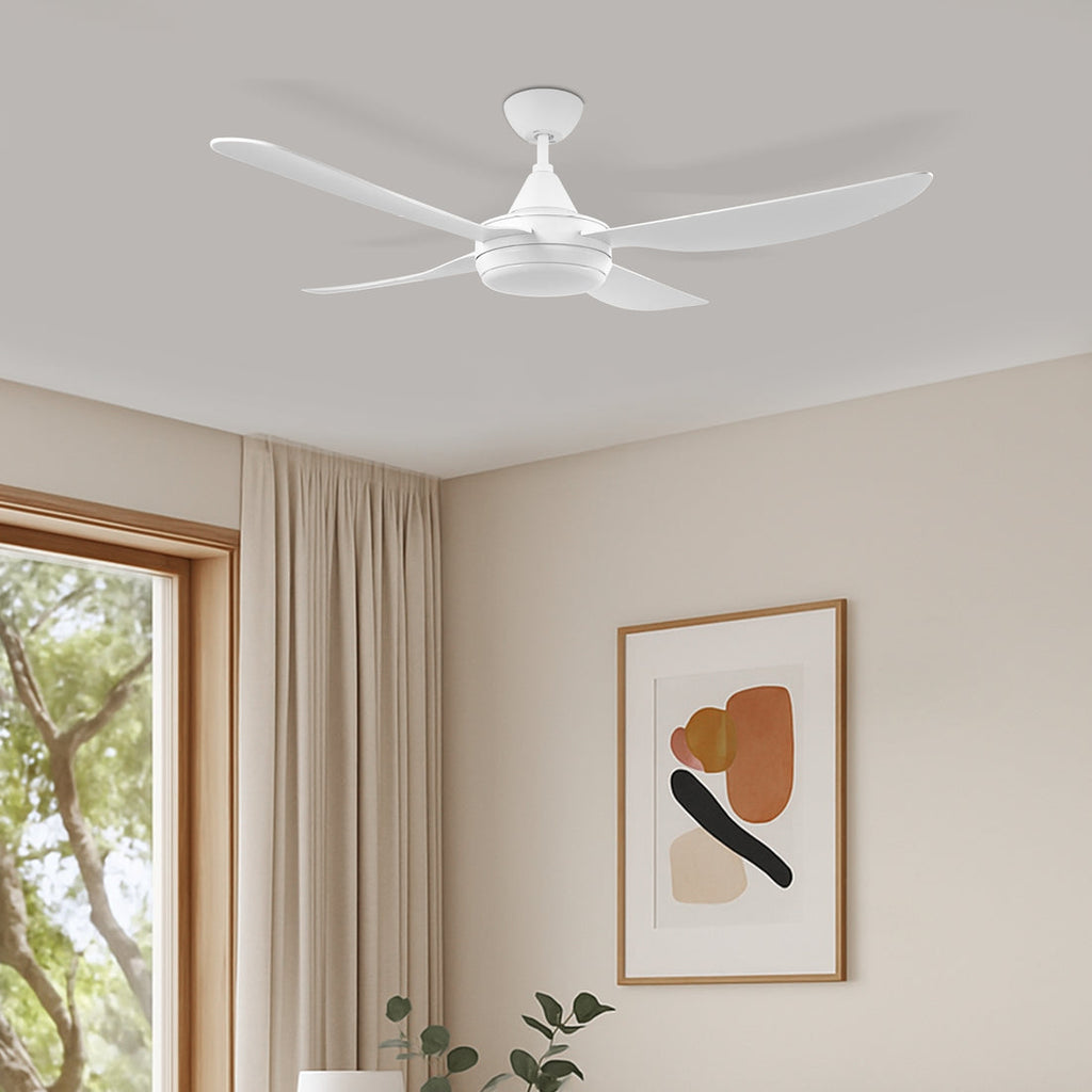 - The Vector DC Ceiling Fan 48" with LED Light 40W Tri Colour in White features a sleek, modern design that effortlessly complements a wide range of interiors. Equipped with a powerful yet quiet DC motor delivering market-leading airflow, it ensures efficient and comfortable air circulation.